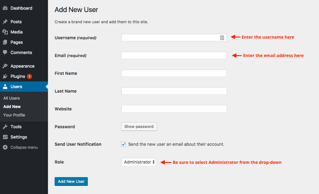 If you ever need to give someone administrator access to your website, here are the steps on how to create a new administrator account on your WordPress website.